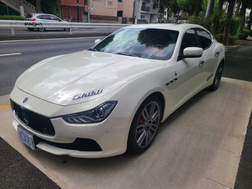 GOO鑑定書付 2015年 マセラティ ギブリSーQ4が入庫しました。デイラー車 左ハンドル 8AT 車検令和8年7月 ホワイトビアンコ 赤革シート 純正ナビTVETCバックカメラ CD GPSレーダー  Fドライブレコーダー リヤ3面スモークフィルム カーボンピラーカバー 245/40ー20 285/35ー20(ミシュラン パイロットスポーツ4S)前後シートヒーター 電動リヤカーテン カーテシーランプ付 ボディーガラスコーティング施工車 タイヤ、前後ブレーキパッド、バッテリー交換済 保証書 取説 スペアキー 走行7.400キロ 今回は、400万にて御提供です。