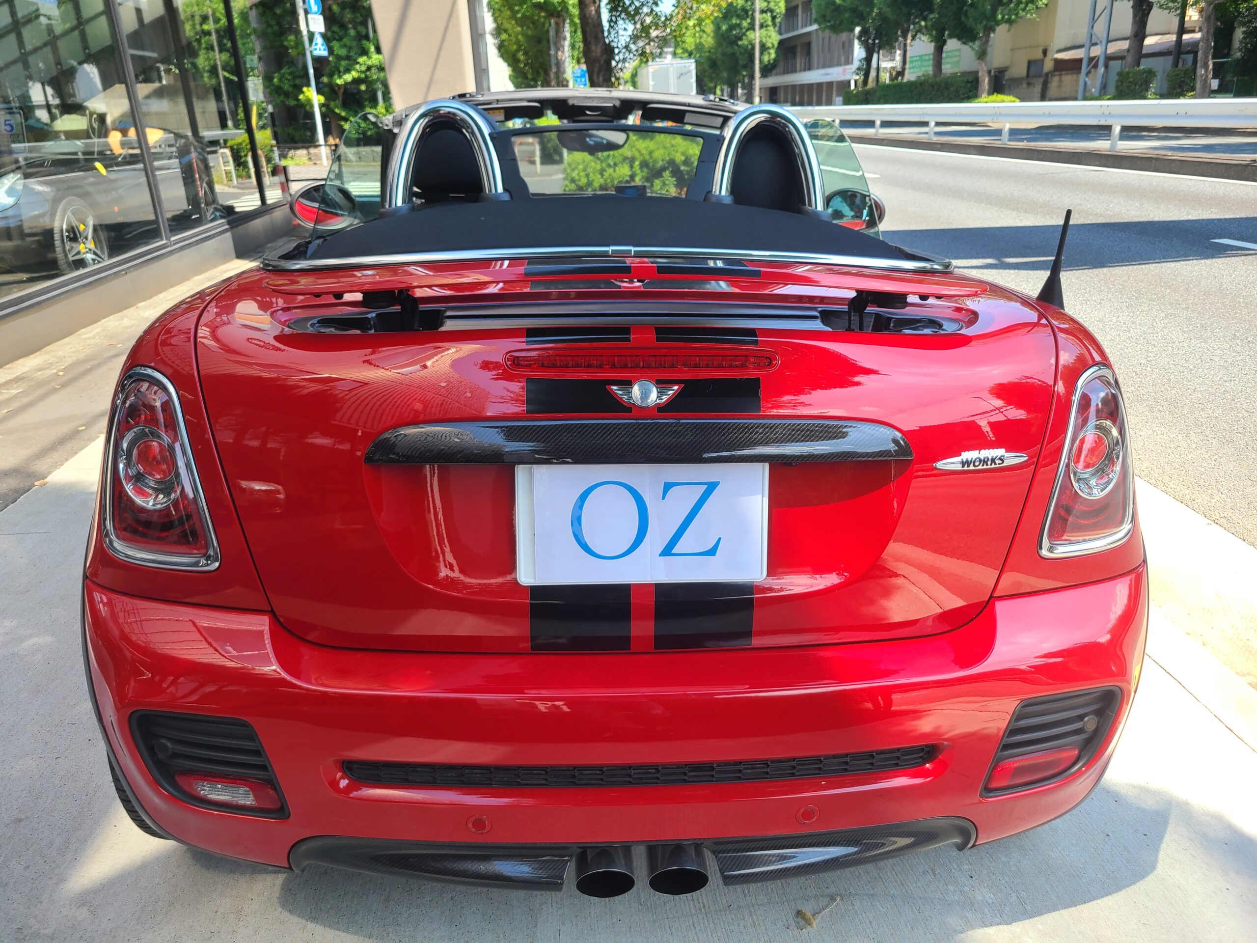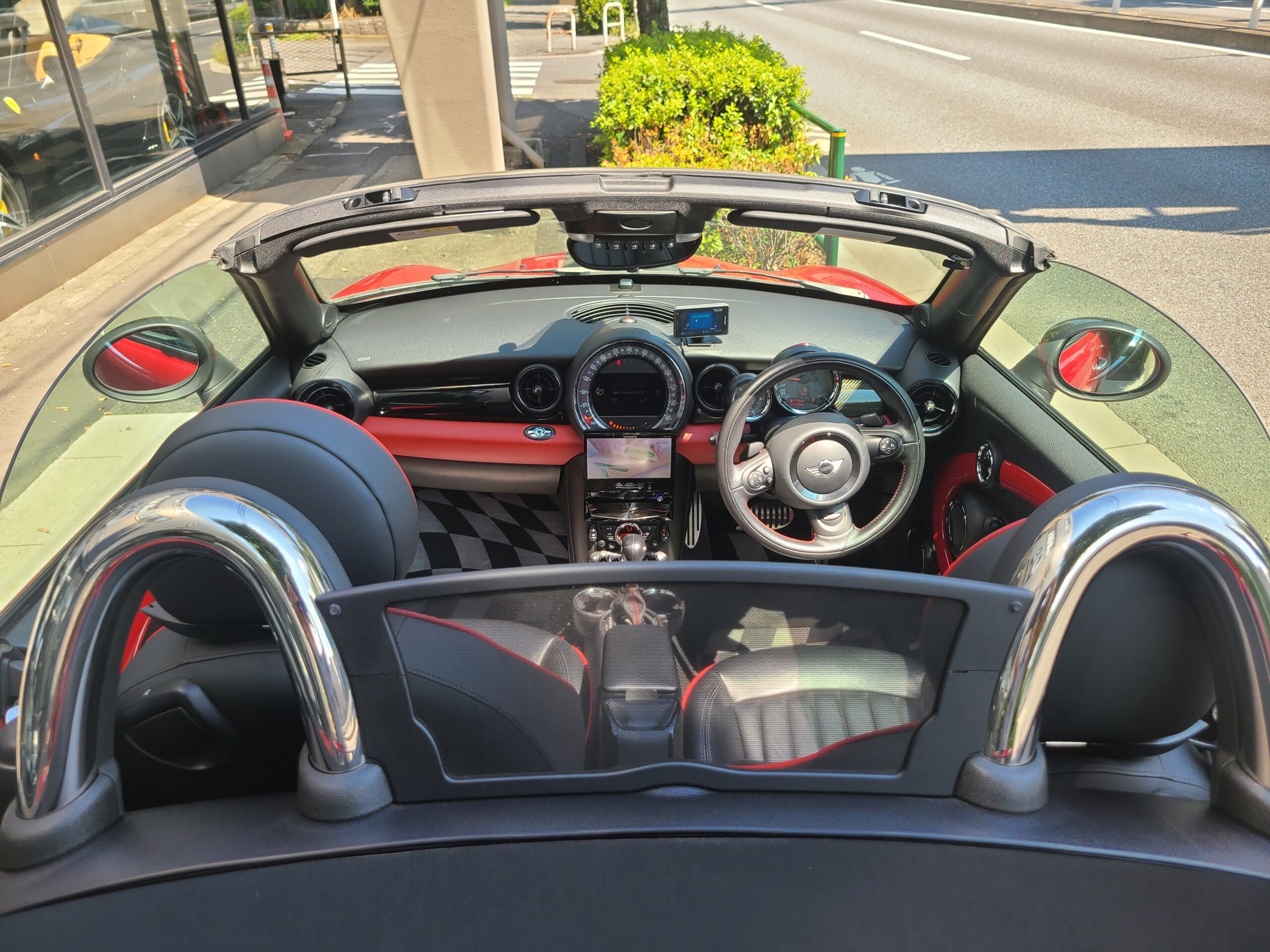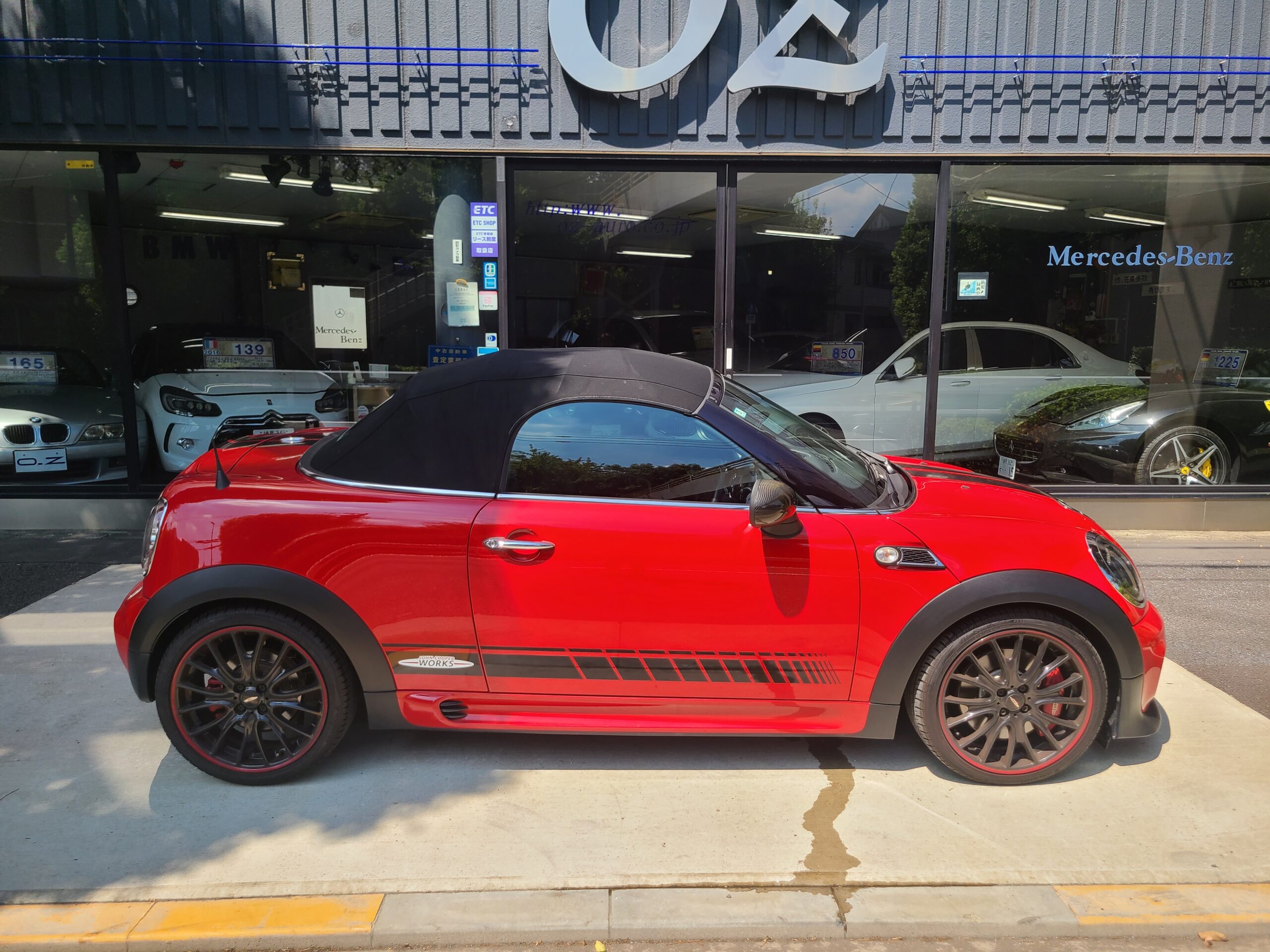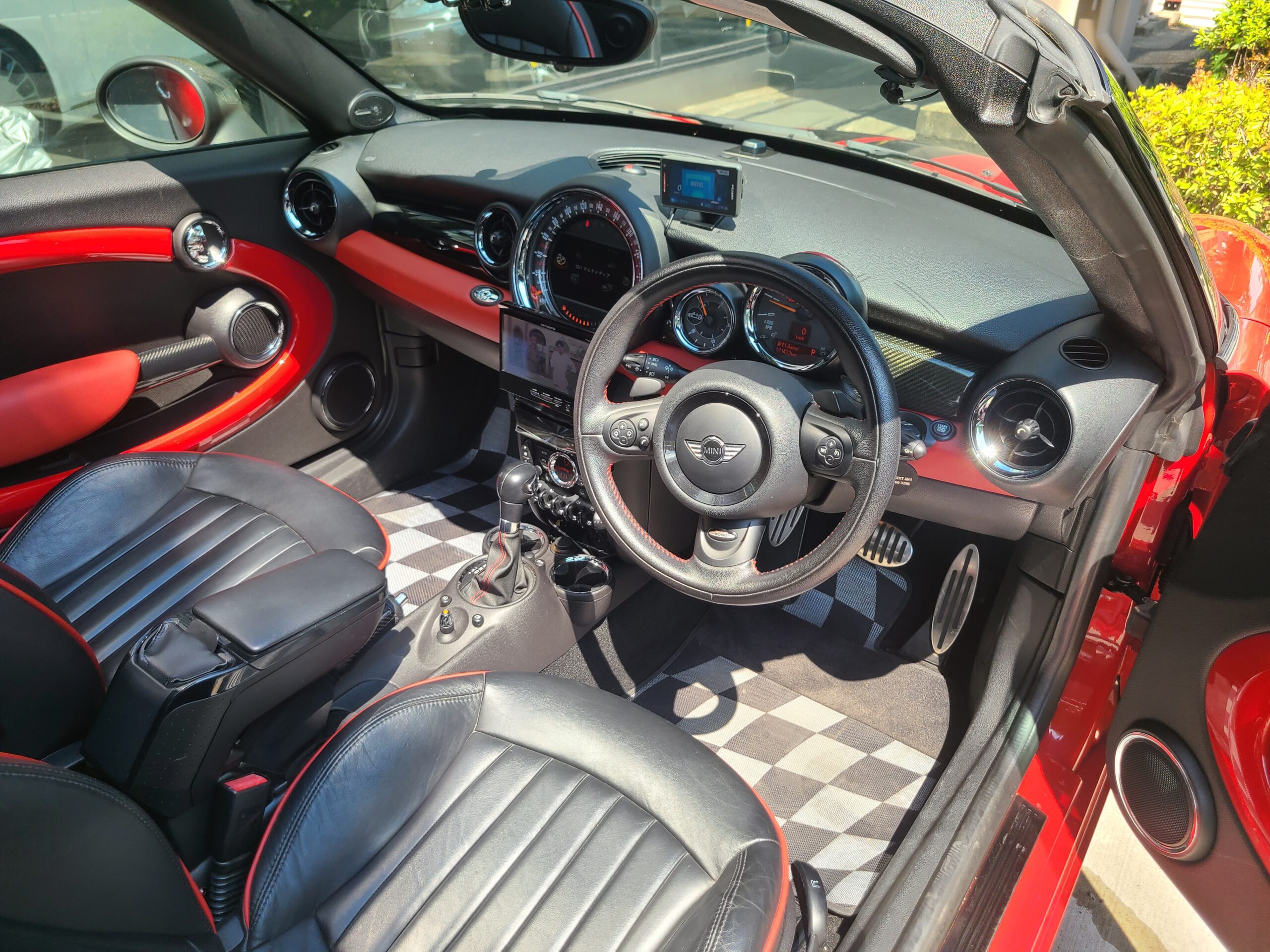 GOO 鑑定書付 2013年 MINI ジョンクーパーワークス ロードスターが入庫しました。右ハンドル 6AT 車検令和9年3月13日 チリレッド ナビ(カロッツェリアAVICーVH0999)TVETCバックカメラ GPSレーダー シートヒーター CDデッキ 電動オープン 電動リヤスポイラー カーボンドアミラーカバー 205/40ー18 取説 保証書 記録簿9枚 スペアキー 走行71.600キロ 今回は、215万にて御提供です。