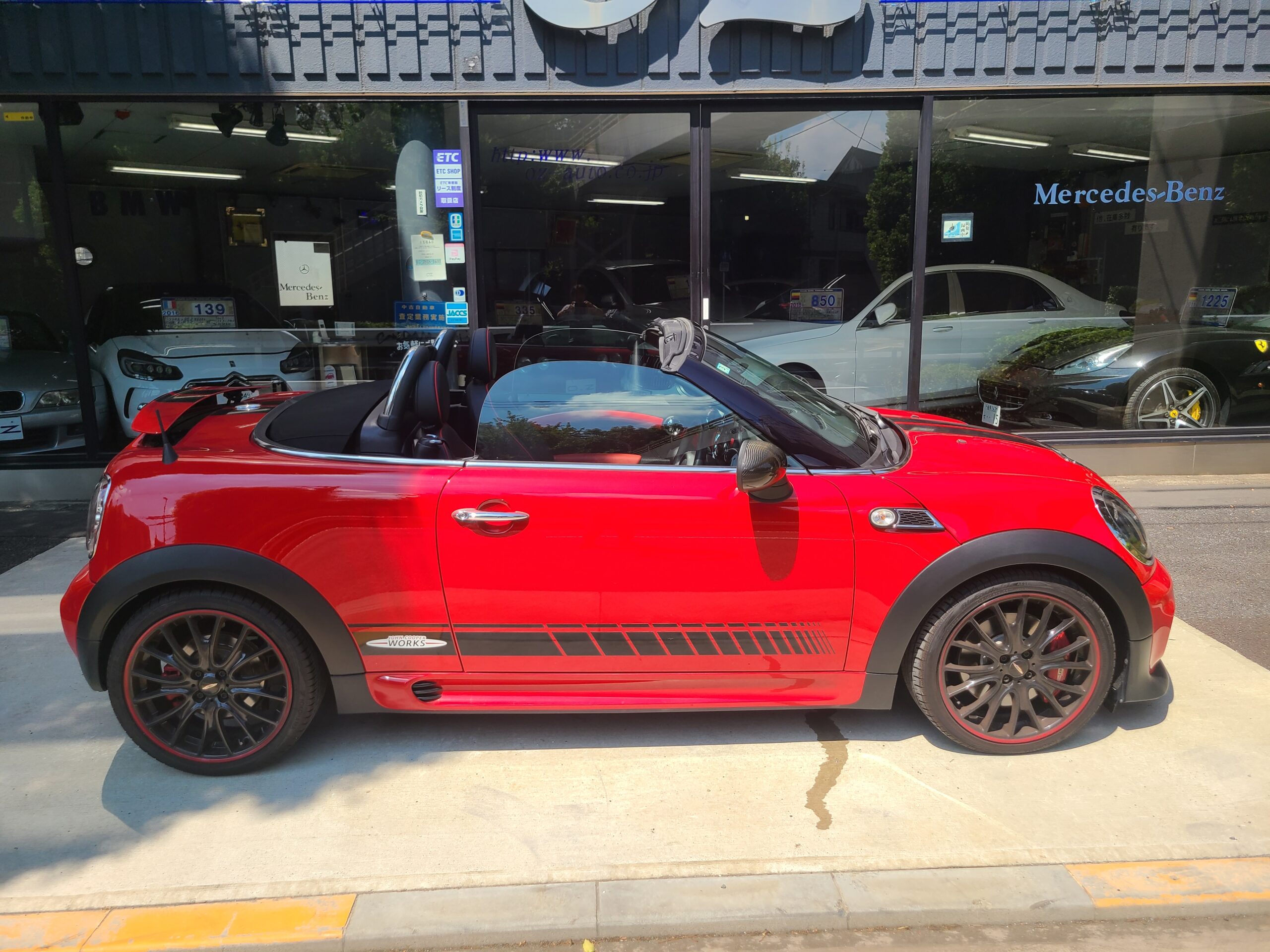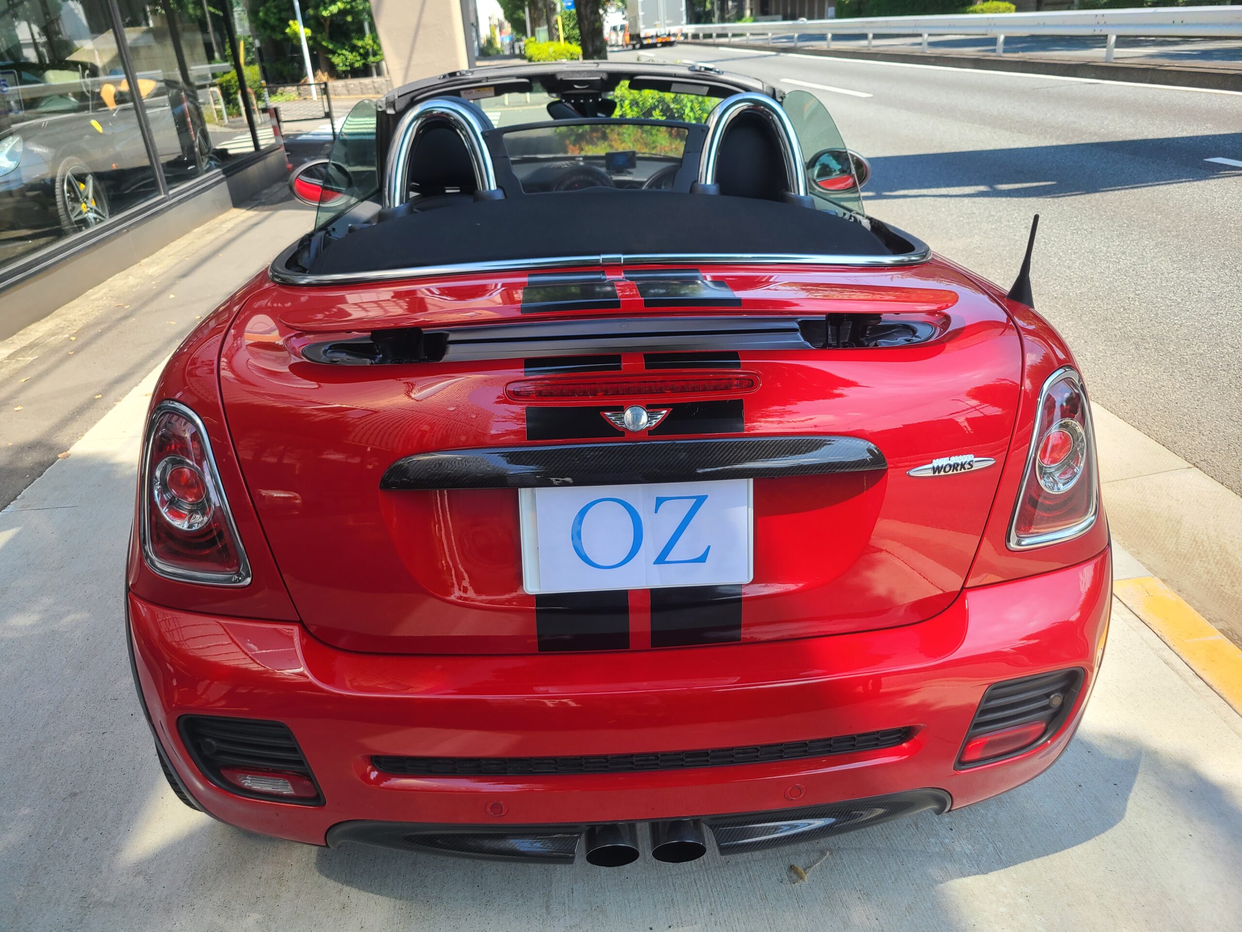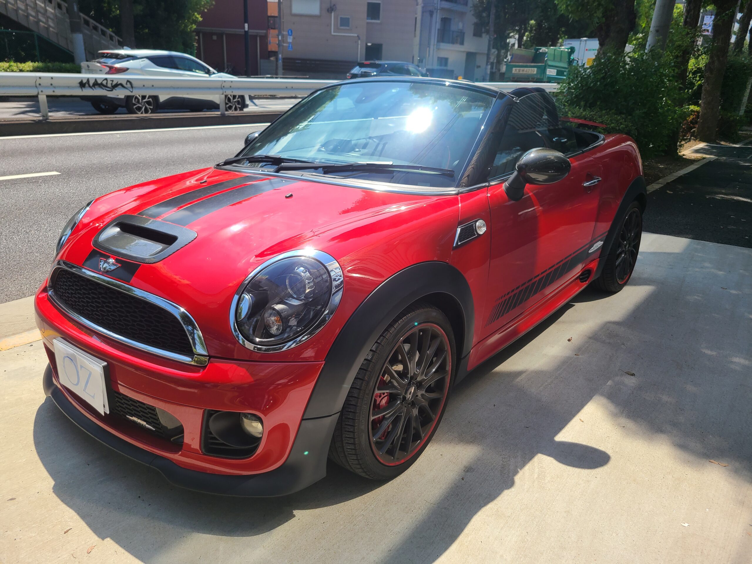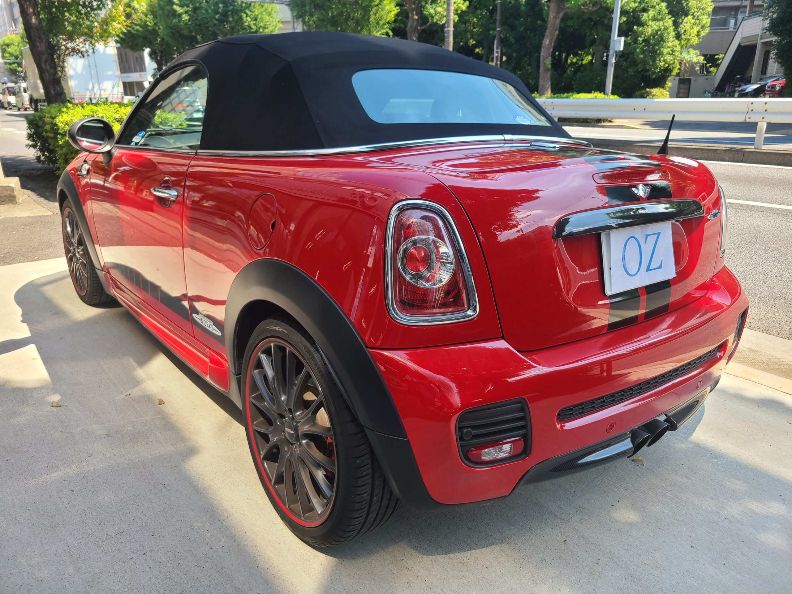GOO 鑑定書付 2013年 MINI ジョンクーパーワークス ロードスターが入庫しました。右ハンドル 6AT 車検令和9年3月13日 チリレッド ナビ(カロッツェリアAVICーVH0999)TVETCバックカメラ GPSレーダー シートヒーター CDデッキ 電動オープン 電動リヤスポイラー カーボンドアミラーカバー 205/40ー18 取説 保証書 記録簿9枚 スペアキー 走行71.600キロ 今回は、215万にて御提供です。