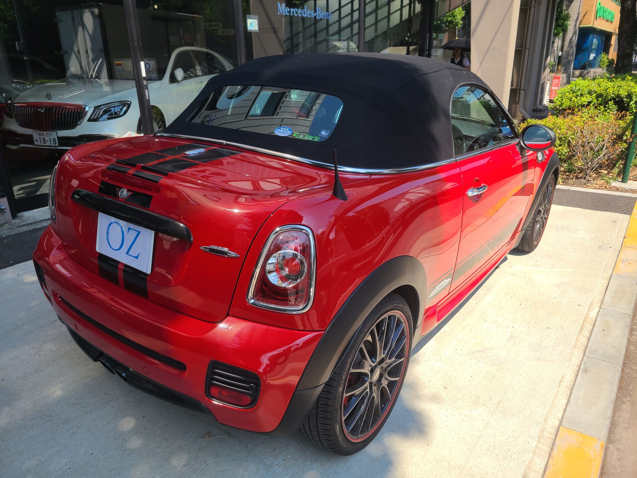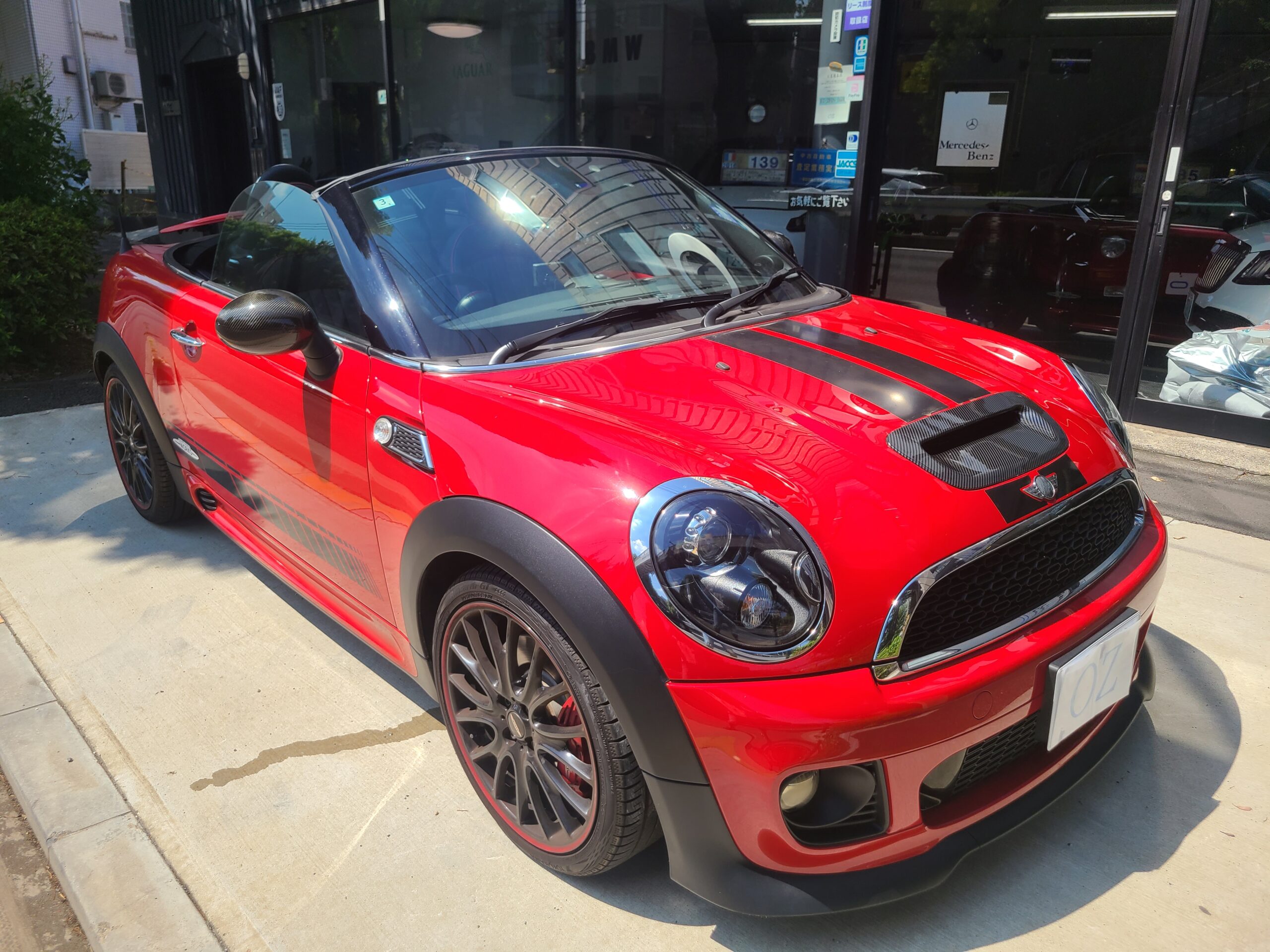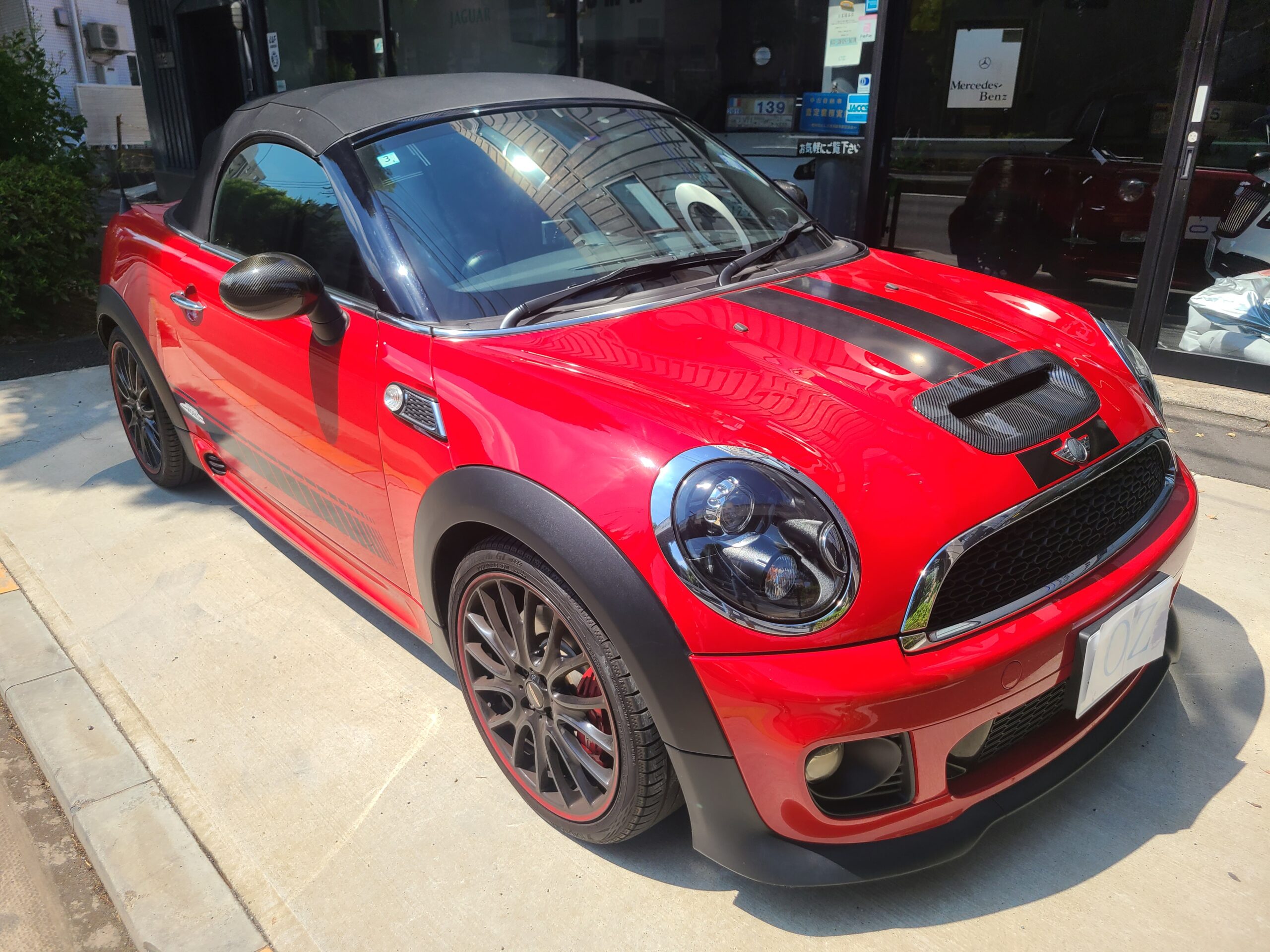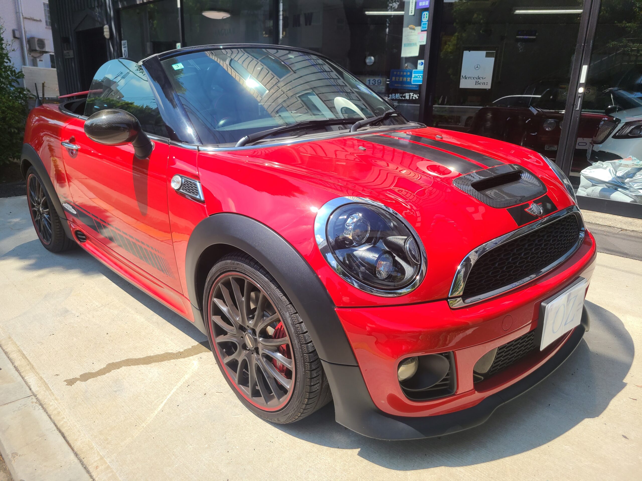 GOO 鑑定書付 2013年 MINI ジョンクーパーワークス ロードスターが入庫しました。右ハンドル 6AT 車検令和9年3月13日 チリレッド ナビ(カロッツェリアAVICーVH0999)TVETCバックカメラ GPSレーダー シートヒーター CDデッキ 電動オープン 電動リヤスポイラー カーボンドアミラーカバー 205/40ー18 取説 保証書 記録簿9枚 スペアキー 走行71.600キロ 今回は、215万にて御提供です。