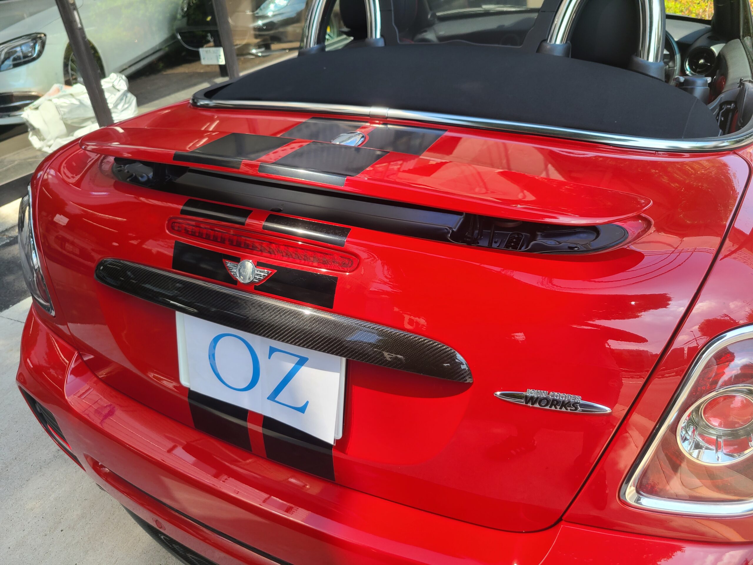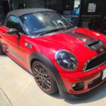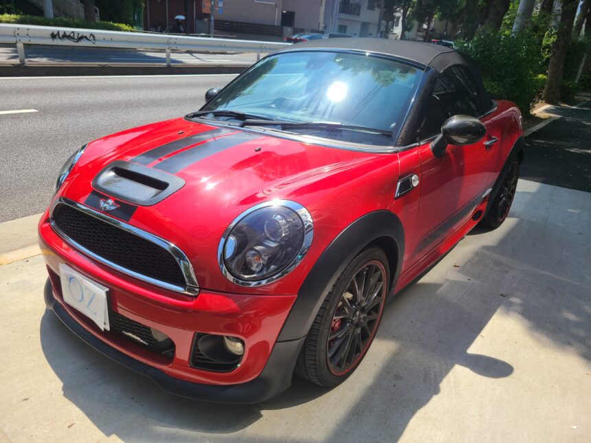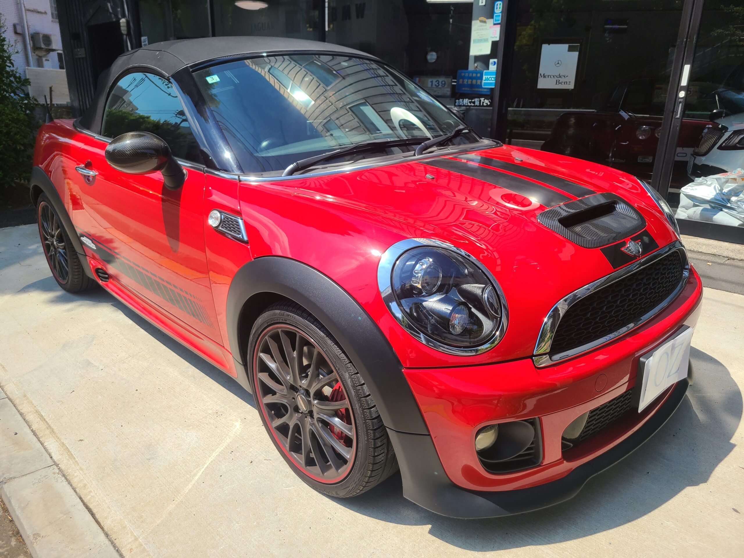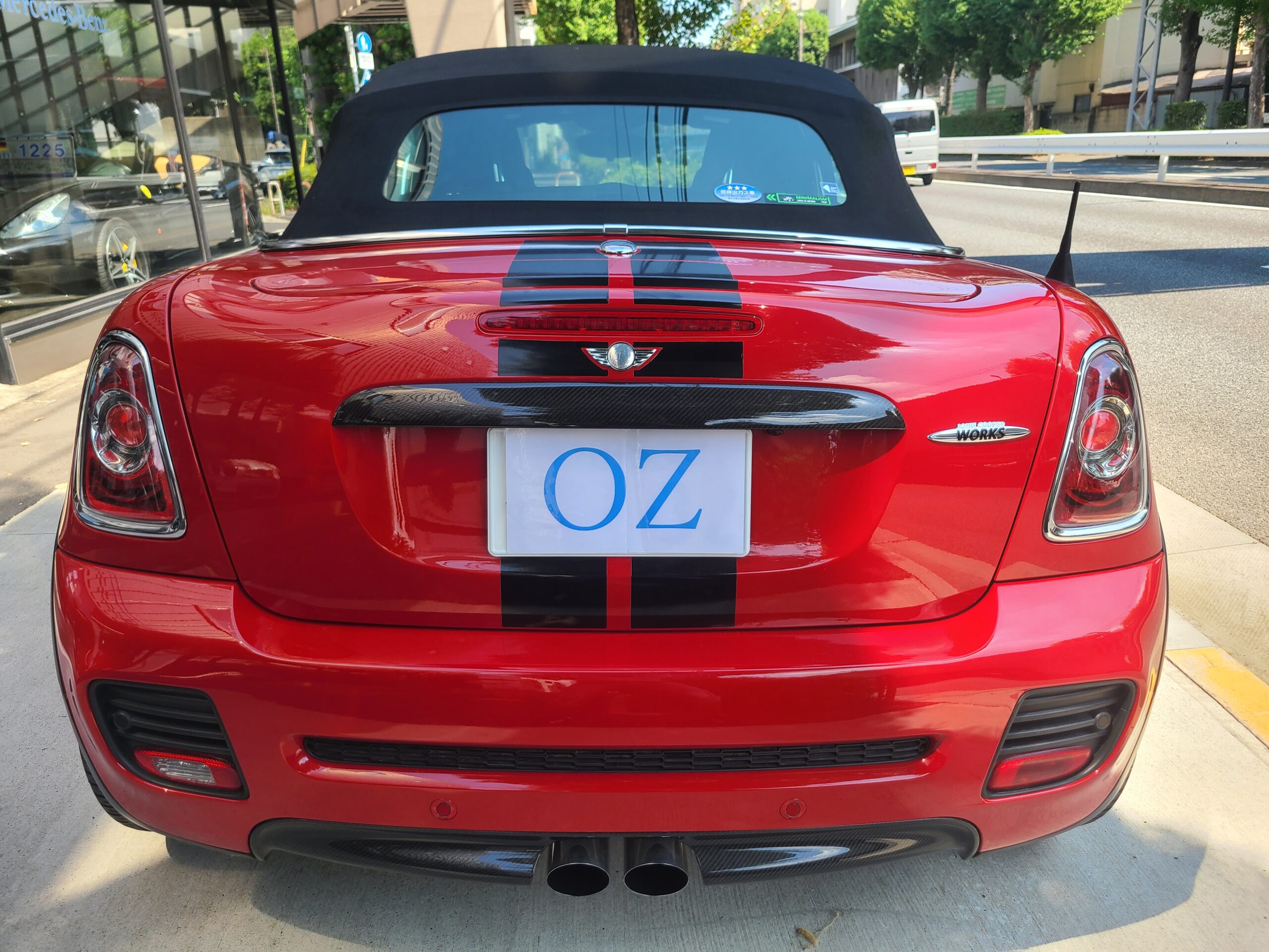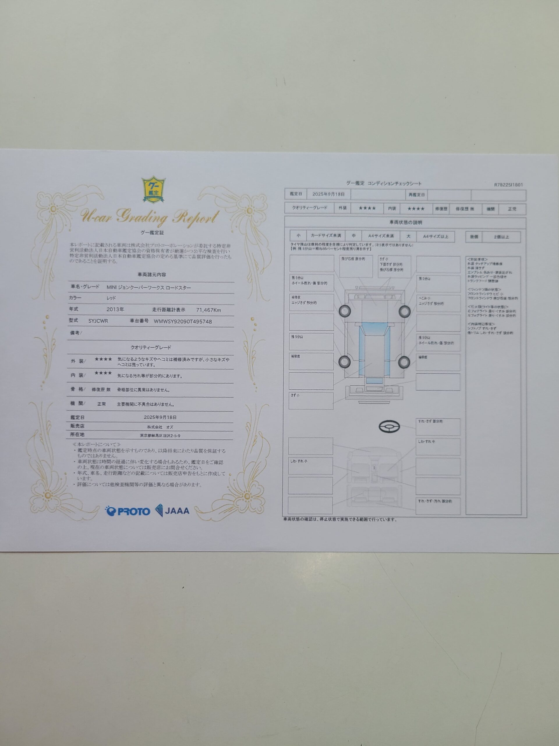GOO 鑑定書付 2013年 MINI ジョンクーパーワークス ロードスターが入庫しました。右ハンドル 6AT 車検令和9年3月13日 チリレッド ナビ(カロッツェリアAVICーVH0999)TVETCバックカメラ GPSレーダー シートヒーター CDデッキ 電動オープン 電動リヤスポイラー カーボンドアミラーカバー 205/40ー18 取説 保証書 記録簿9枚 スペアキー 走行71.600キロ 今回は、215万にて御提供です。