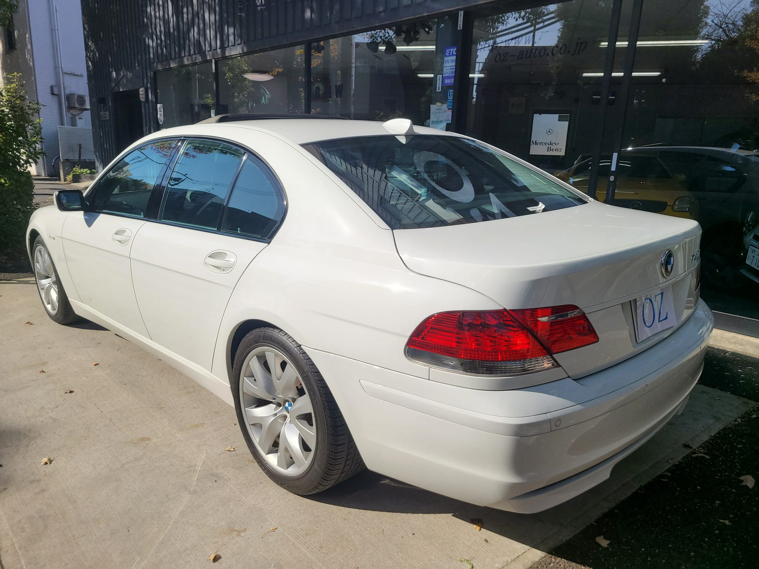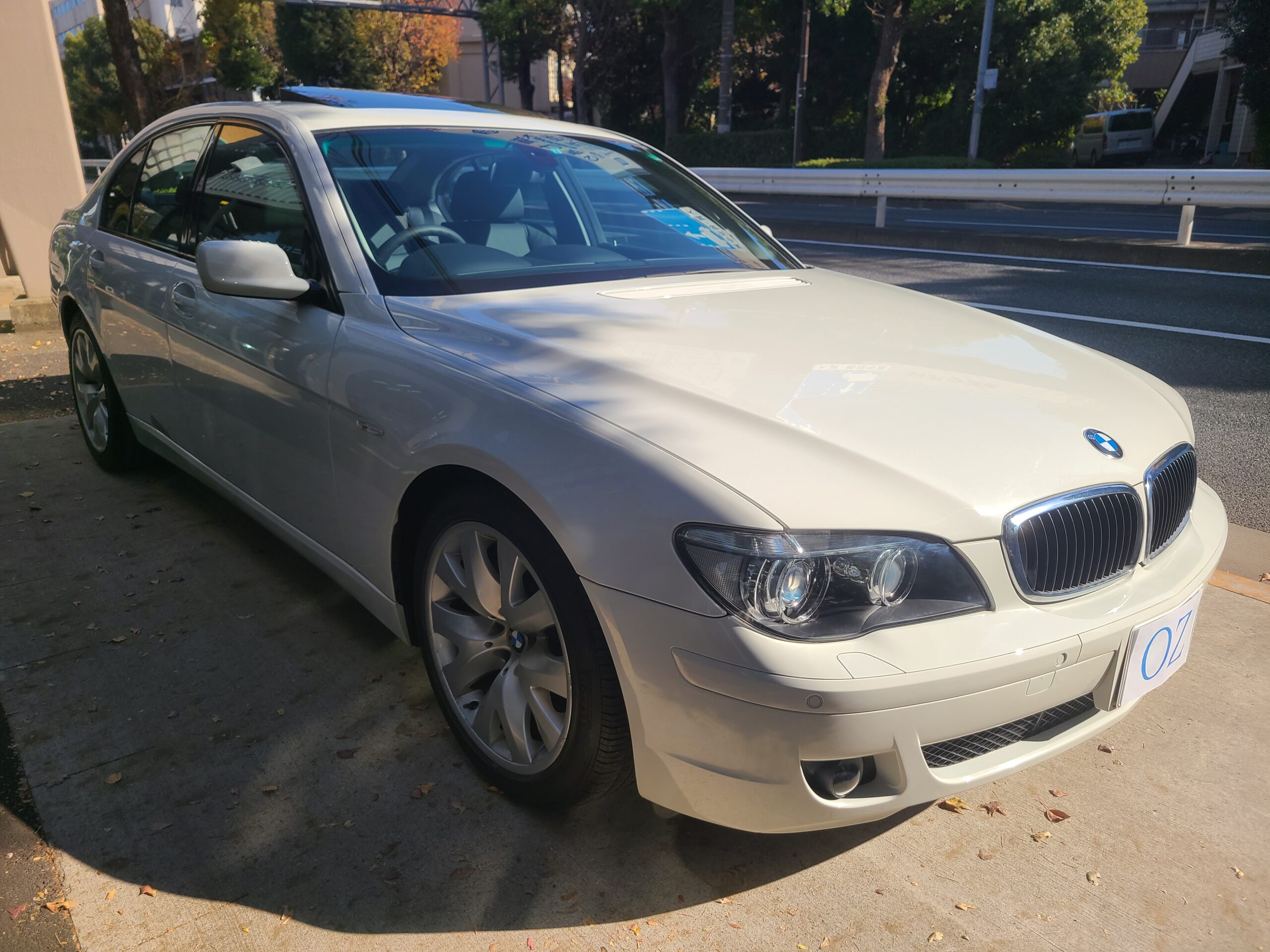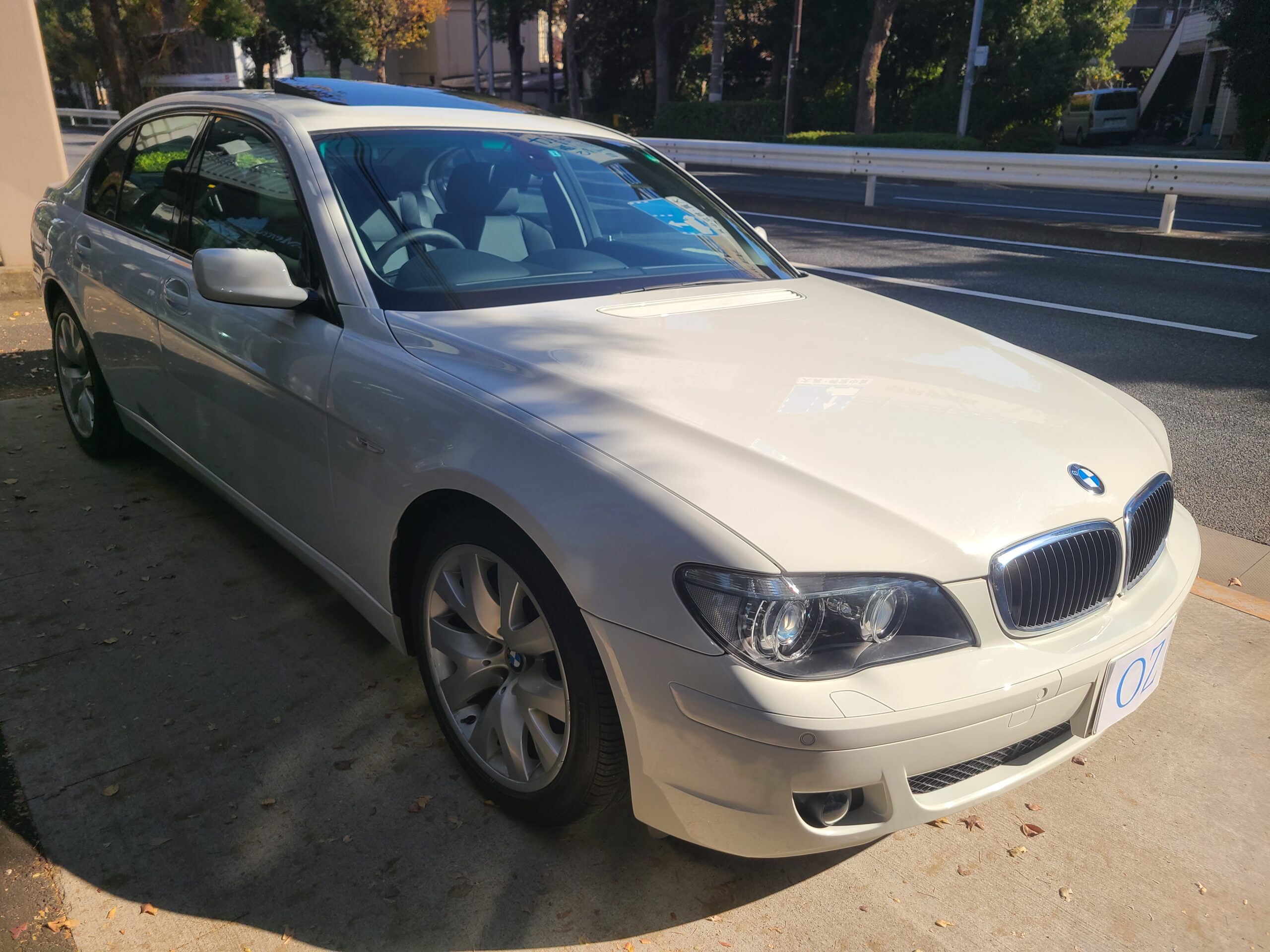 GOO鑑定書付 希少 後期最終モデル 2009年 BMW 740Iが入庫しました。右ハンドル 6AT 車検切れ アルピンホワイト 1オーナー 黒革シート サンルーフ 純正ナビETC MD 6連CDデッキ 前後シートヒーター パワーシート 245/45-19 275/40-19 取説 保証書 記録簿6枚 スペアキー 走行1.580キロ ガラスコーティング施工車 今回は、230万にて御提供です。