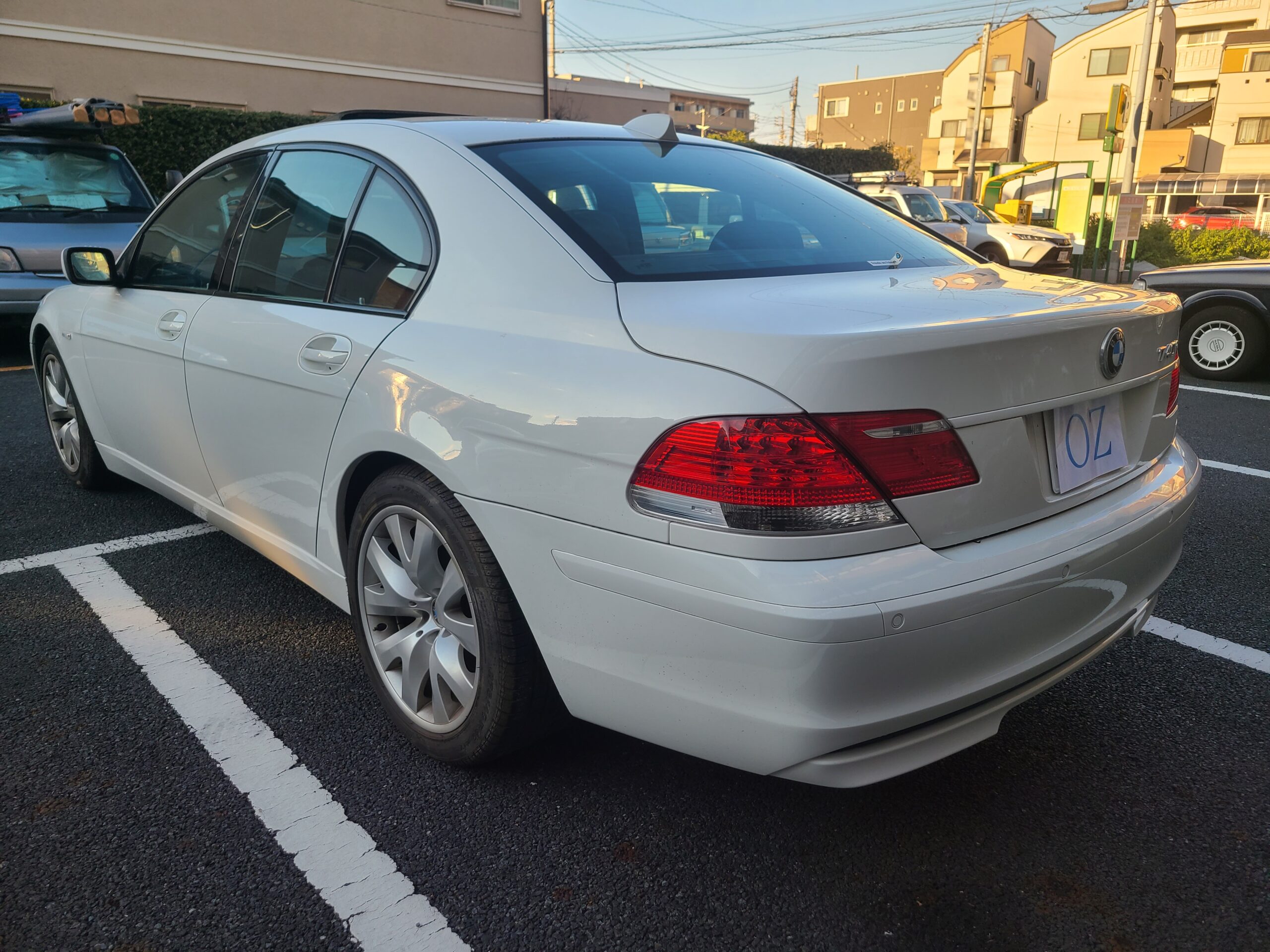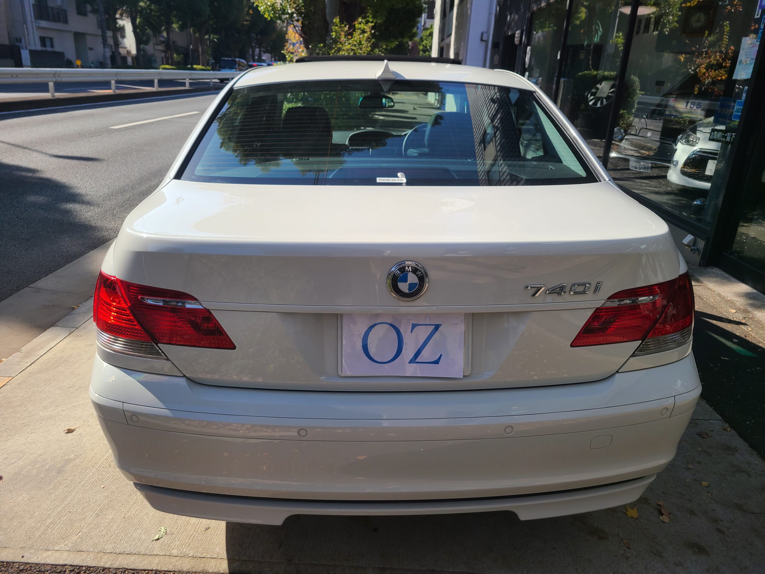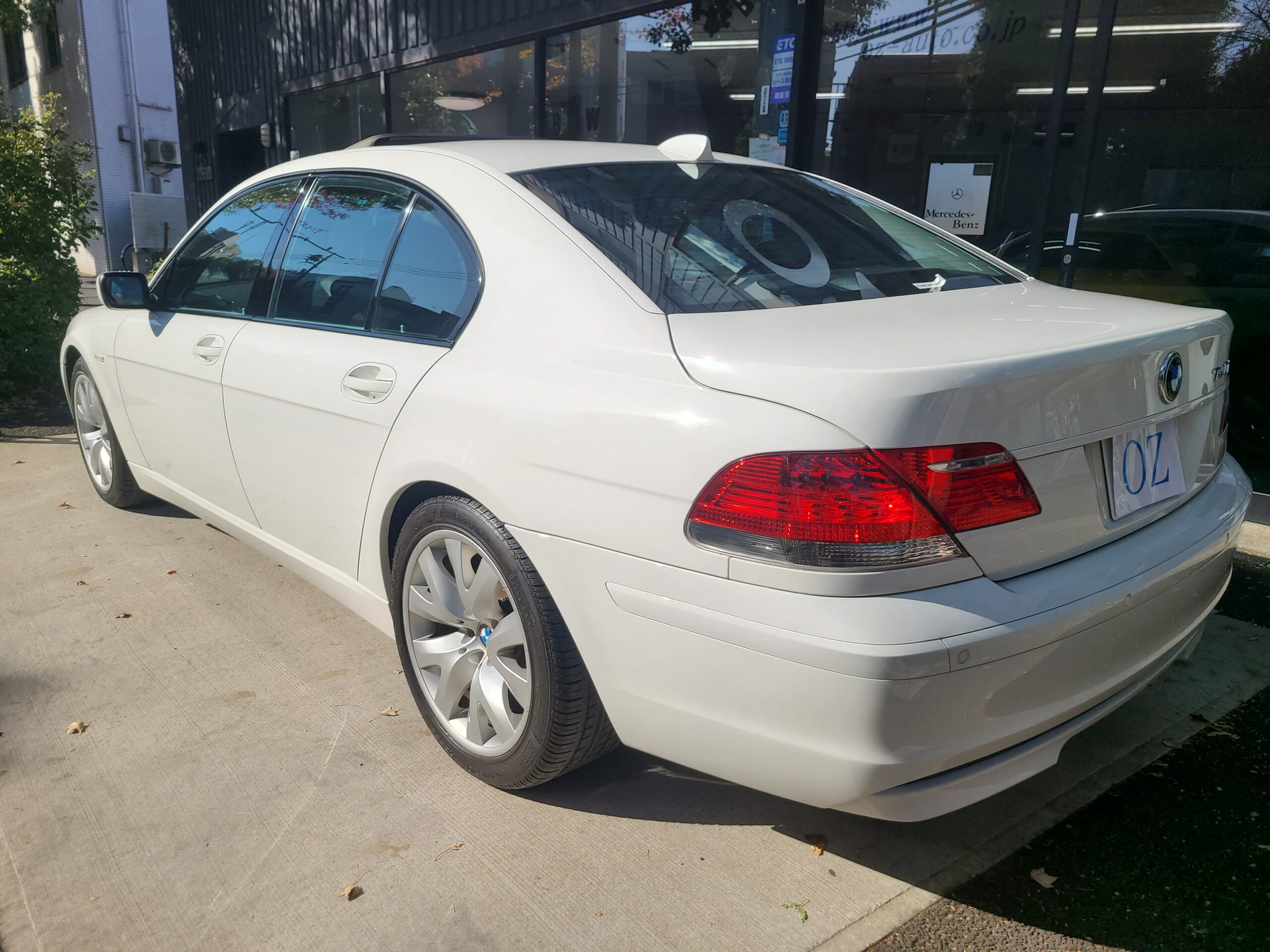 GOO鑑定書付 希少 後期最終モデル 2009年 BMW 740Iが入庫しました。右ハンドル 6AT 車検切れ アルピンホワイト 1オーナー 黒革シート サンルーフ 純正ナビETC MD 6連CDデッキ 前後シートヒーター パワーシート 245/45-19 275/40-19 取説 保証書 記録簿6枚 スペアキー 走行1.580キロ ガラスコーティング施工車 今回は、230万にて御提供です。