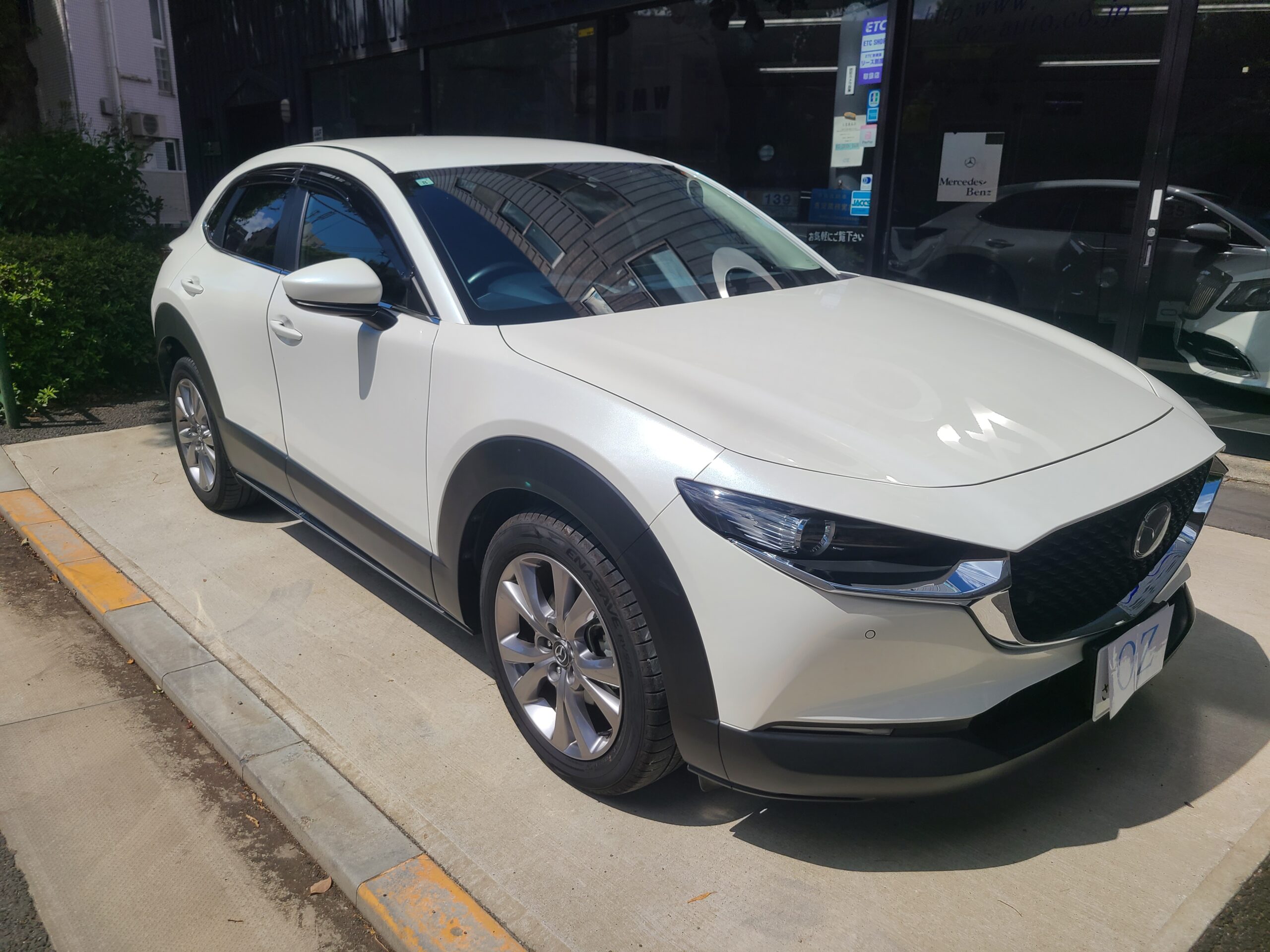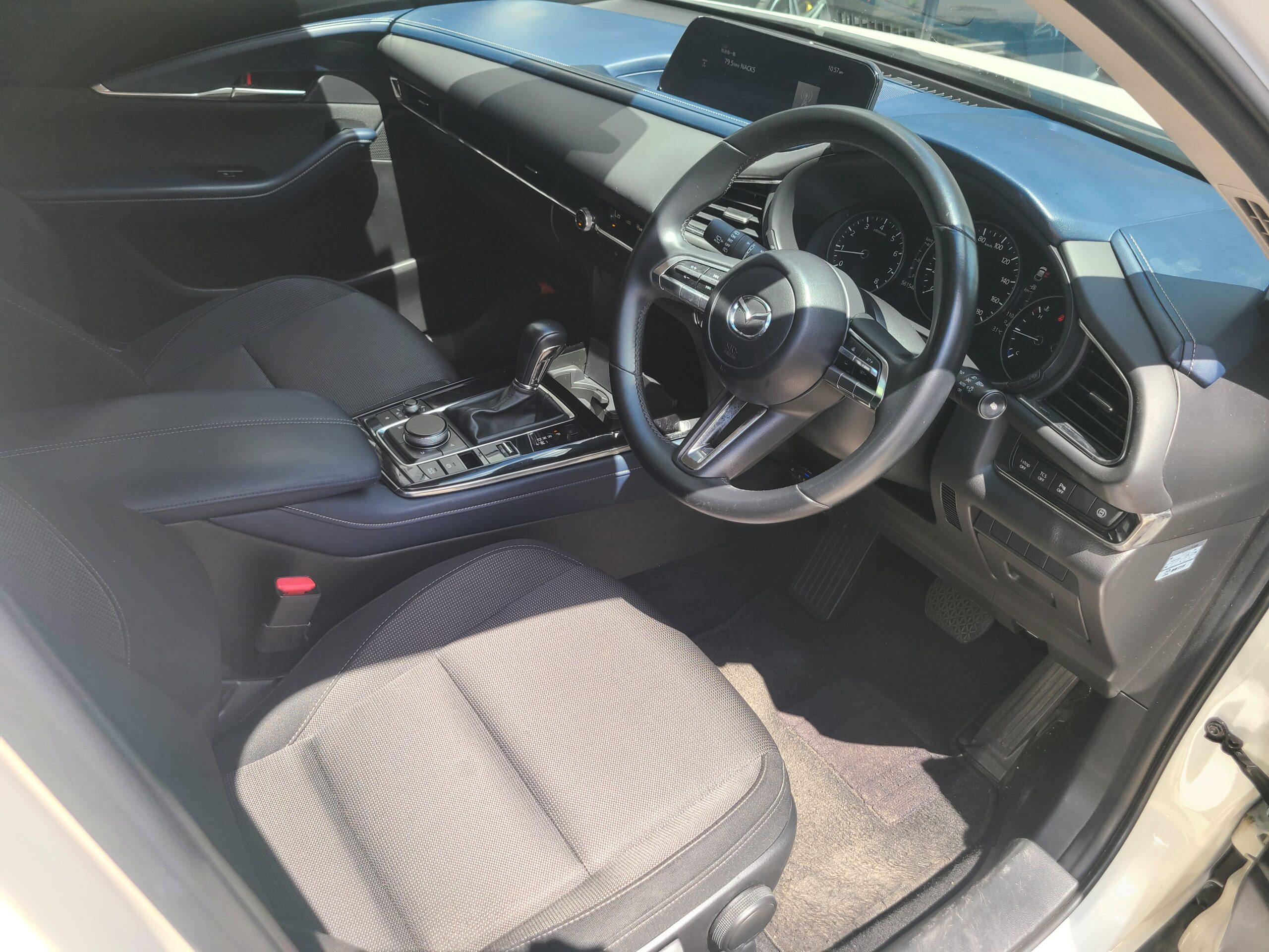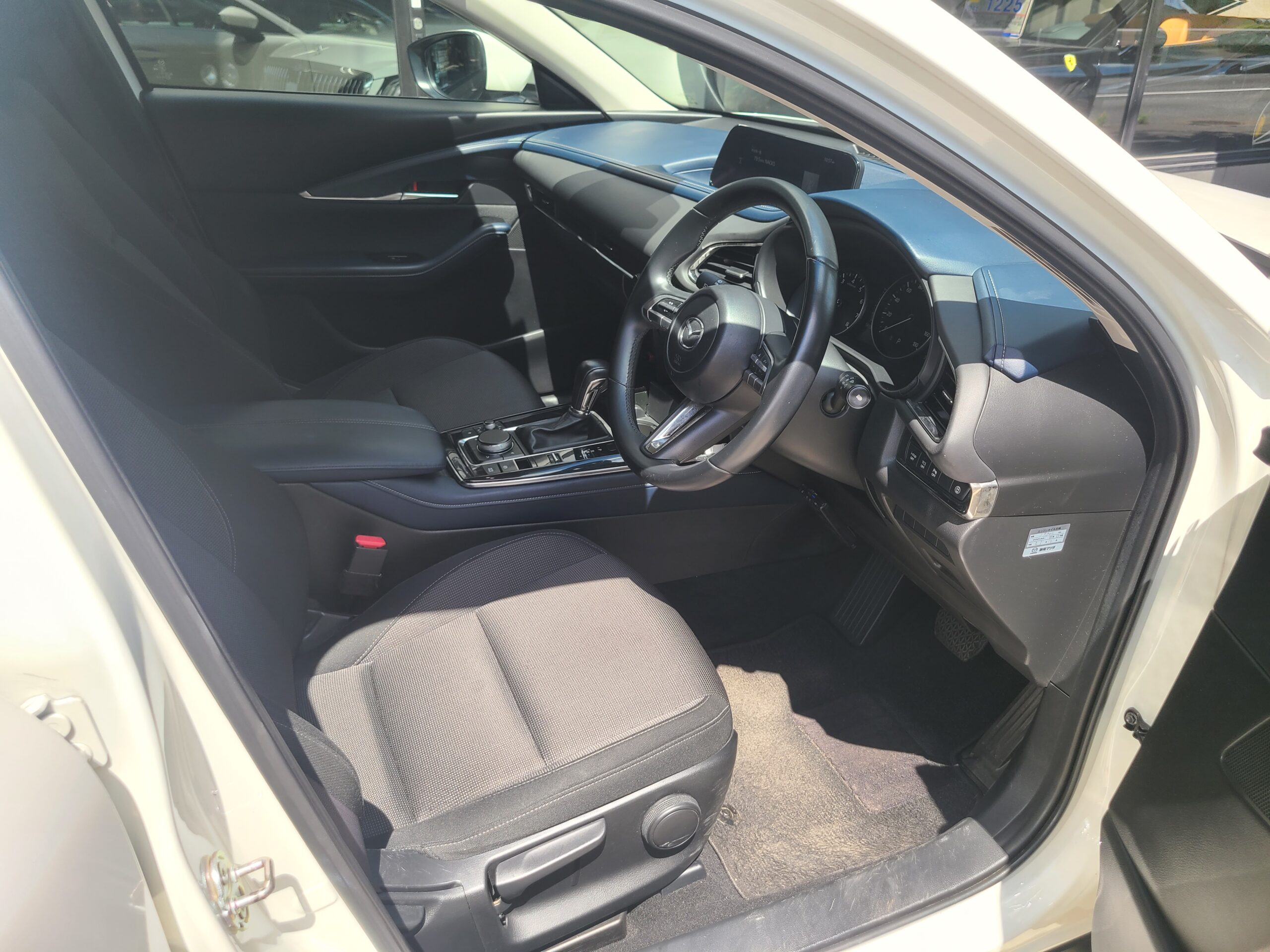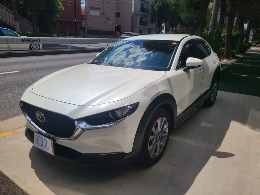 令和2年(2020年)マツダ CXー30 20Sが入庫しました。右ハンドル 6AT 車検令和8年8月24日 スノーフレイクホワイトパールマイカ 純正ナビETCバックカメラ 前後コーナーセンサー ドライブレコーダー サイドバイザー リヤスモークフィルム 215/55-18 取説 記録簿7枚 スペアキー 走行56.300キロ 今回は、185万にて御提供です。