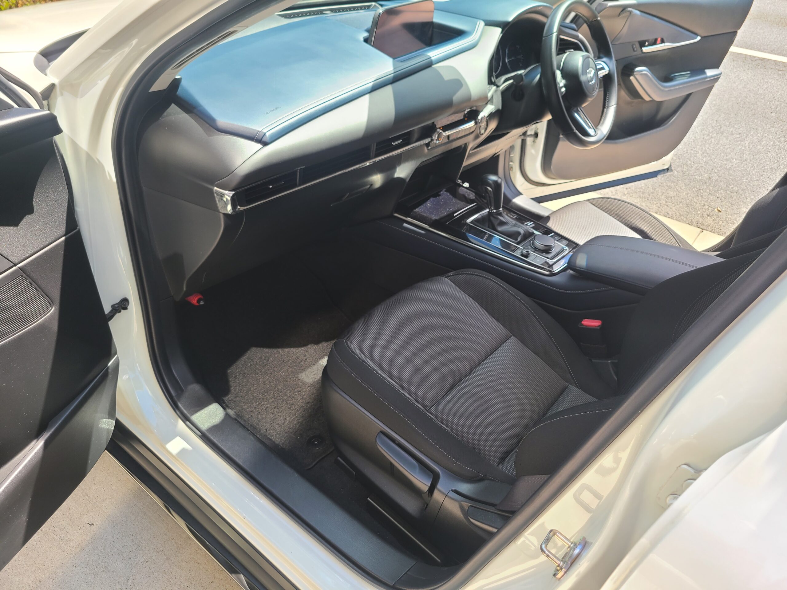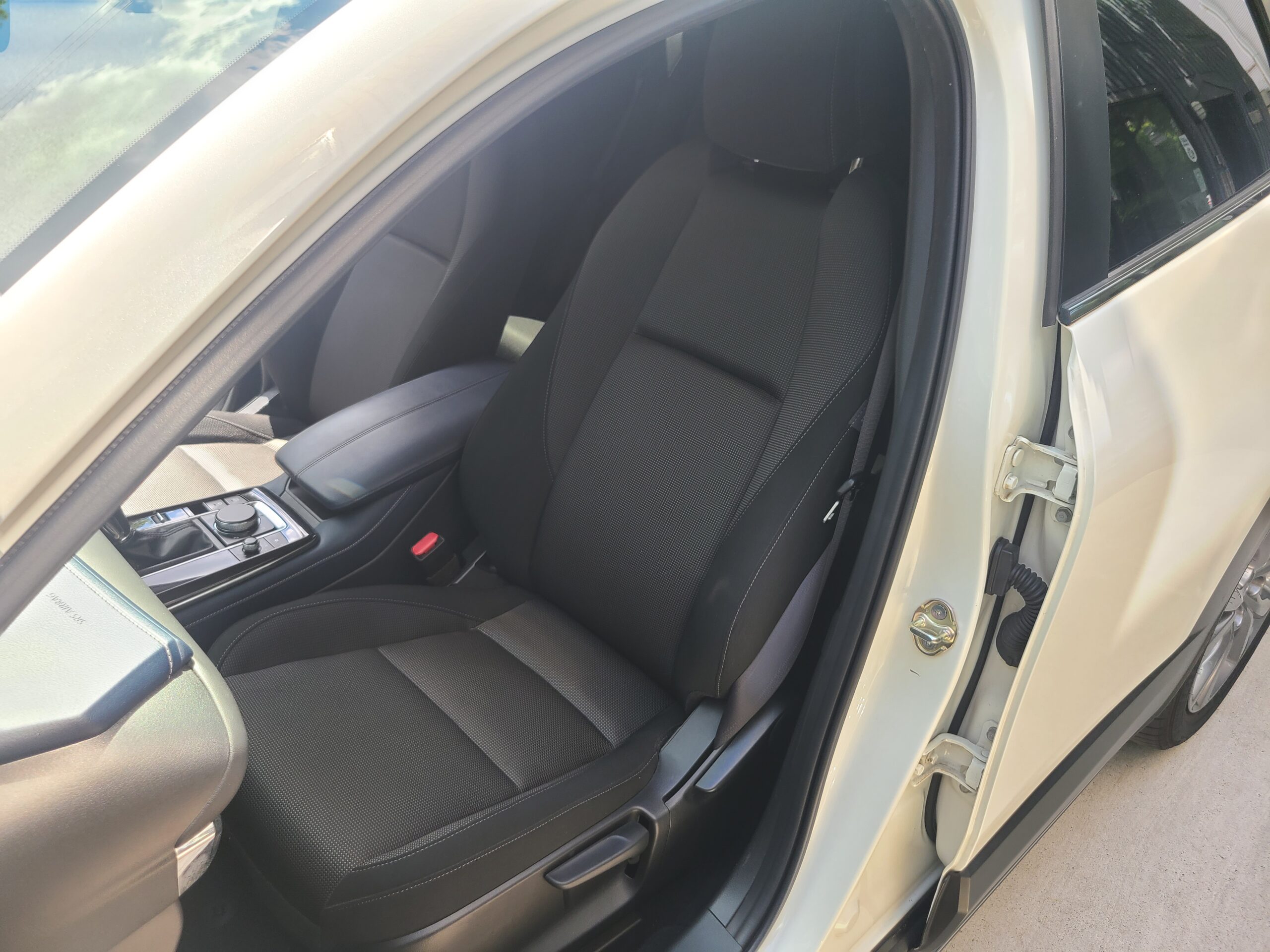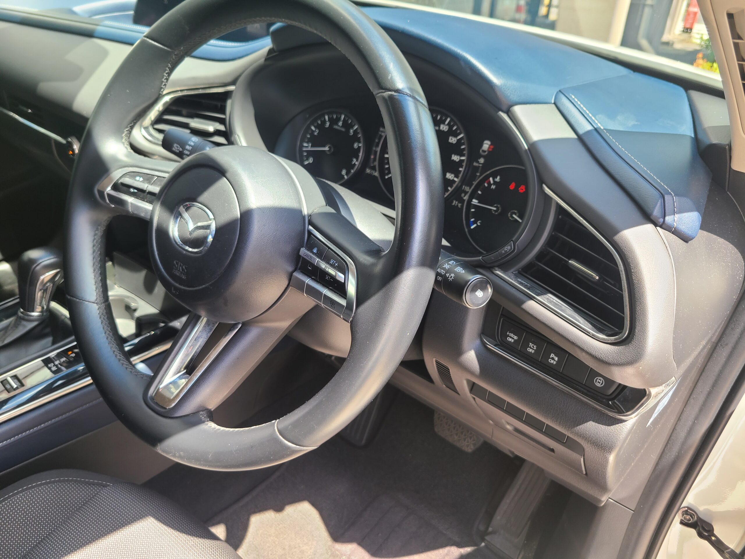 令和2年(2020年)マツダ CXー30 20Sが入庫しました。右ハンドル 6AT 車検令和8年8月24日 スノーフレイクホワイトパールマイカ 純正ナビETCバックカメラ 前後コーナーセンサー ドライブレコーダー サイドバイザー リヤスモークフィルム 215/55-18 取説 記録簿7枚 スペアキー 走行56.300キロ 今回は、185万にて御提供です。