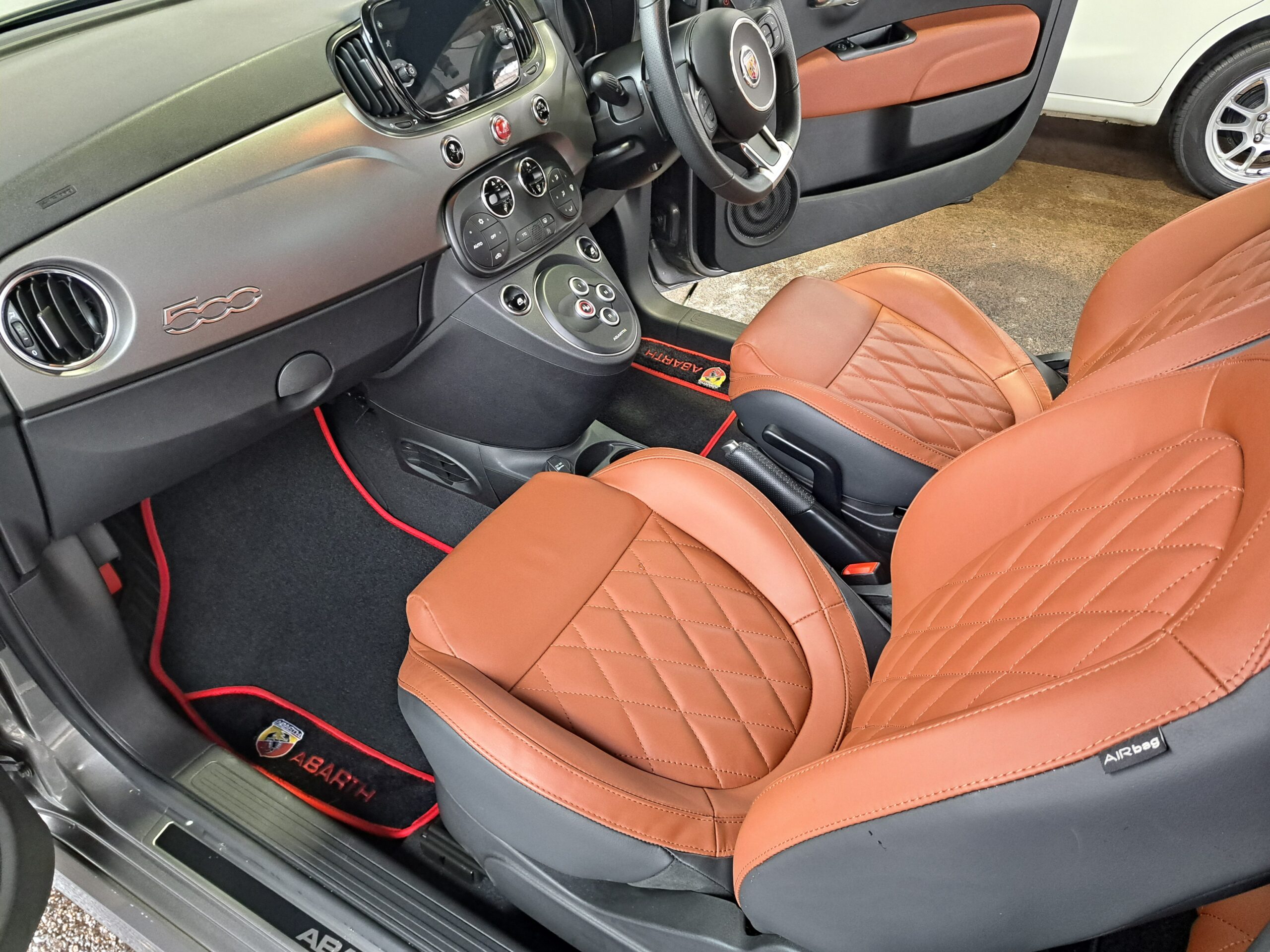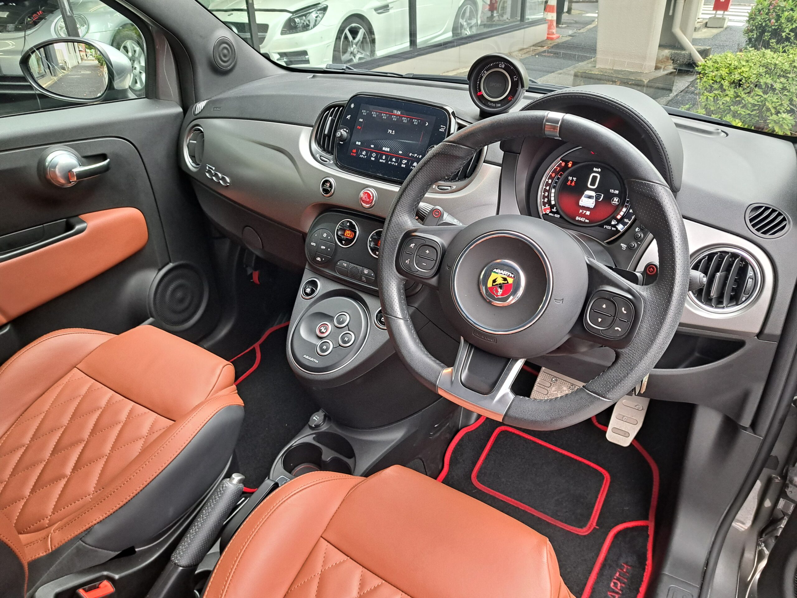 GOO鑑定書付 2022年 アバルト595 ツーリズモ が入庫しました。デイラー車 右ハンドル 5AT 車検令和9年7月21日 アップルカープレイ ETC ブラウンレザーシート リヤセンサー リヤスモークフィルム 205/40ー17 コーティング施工済車 保証書 記録簿 スペアキー 走行8.500キロ 今回は、285万にて御提供です。