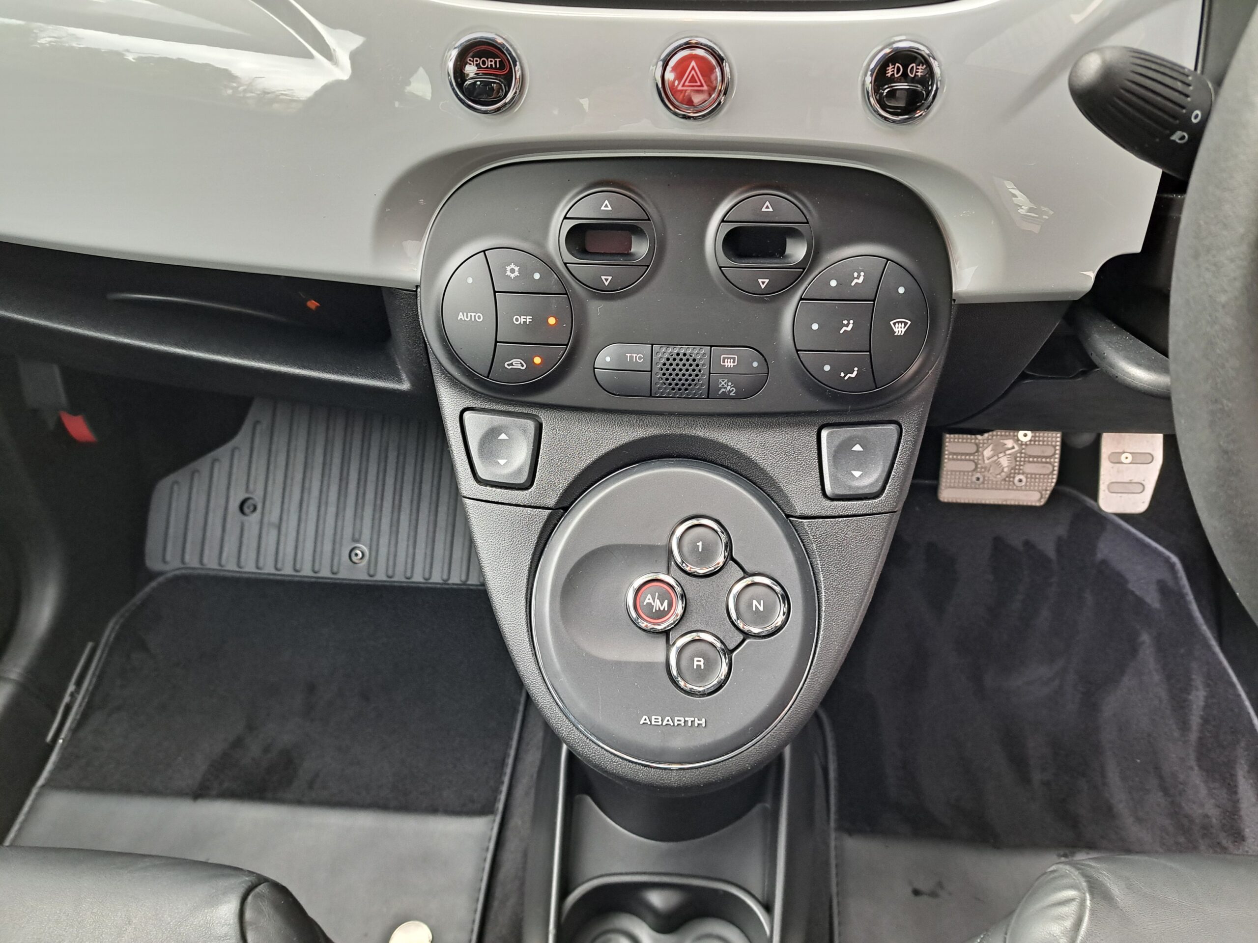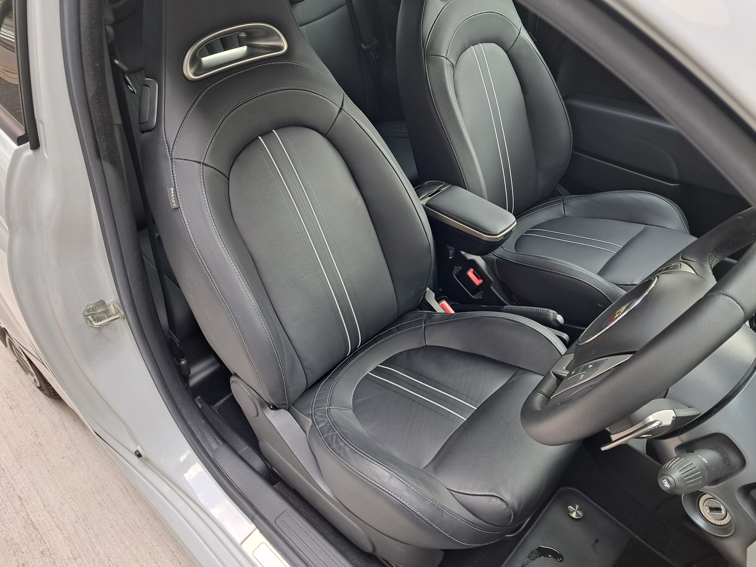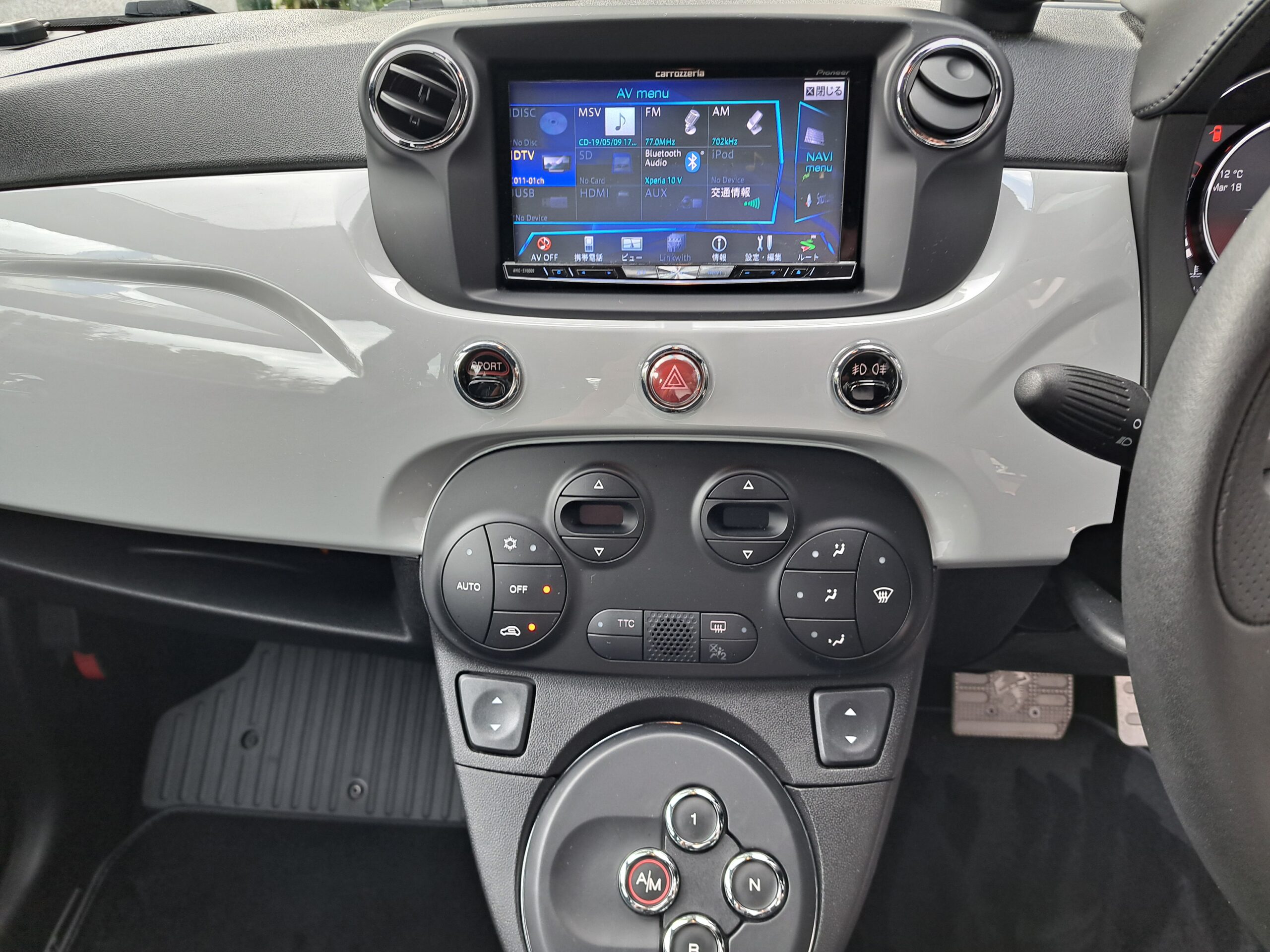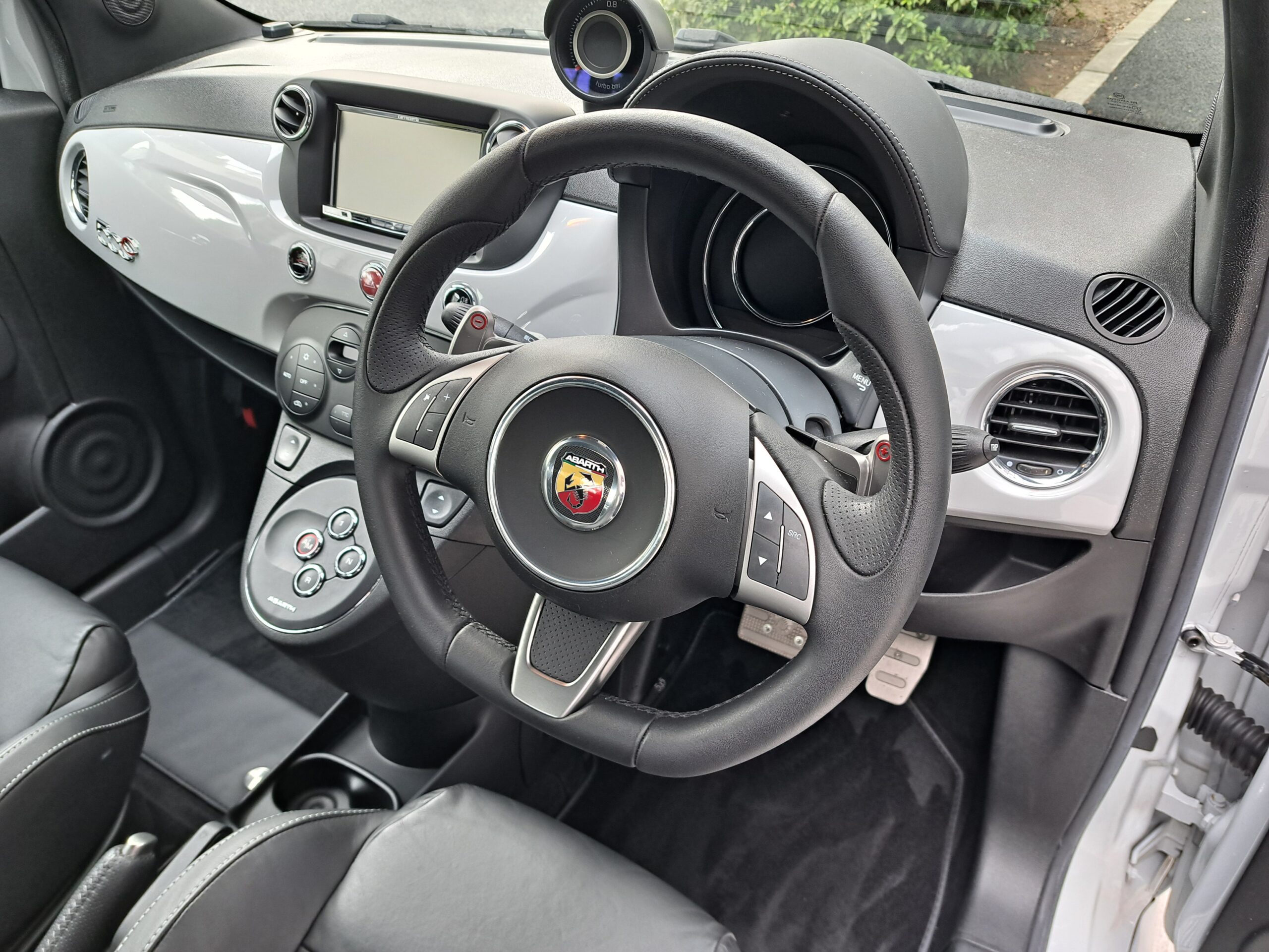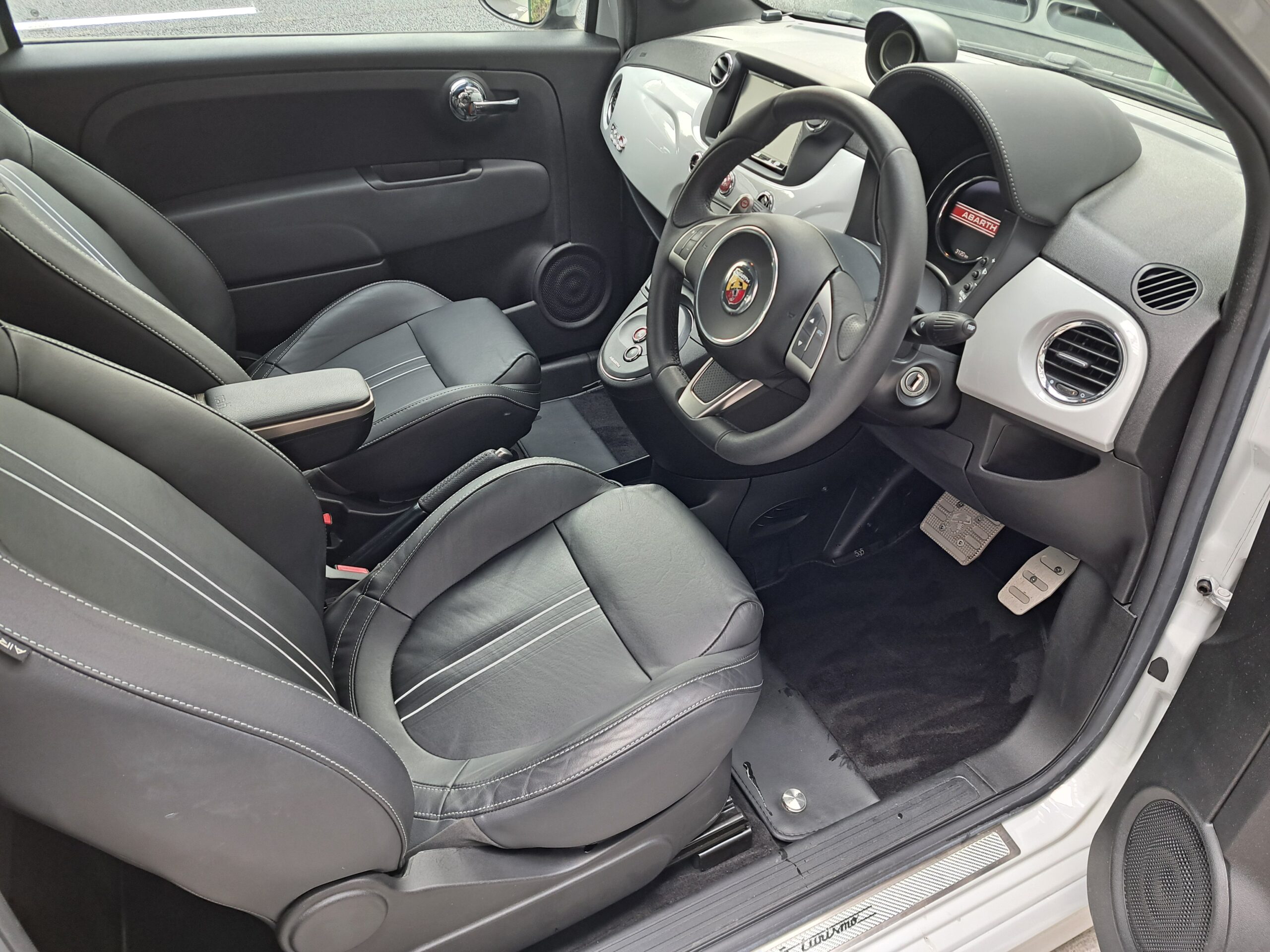 GOO鑑定書付 2016年 アバルト 595C が入庫しました。デイラー車 右ハンドル 5AT FF 160馬力 車検なし グレーメタ 黒革シート ナビTVETC(AVICーZH0009)リヤコーナーセンサー 205/40ー17 保証書 取説 記録簿 スペアキー 走行わずか 3.130キロ 今回は、205万にて御提供です。