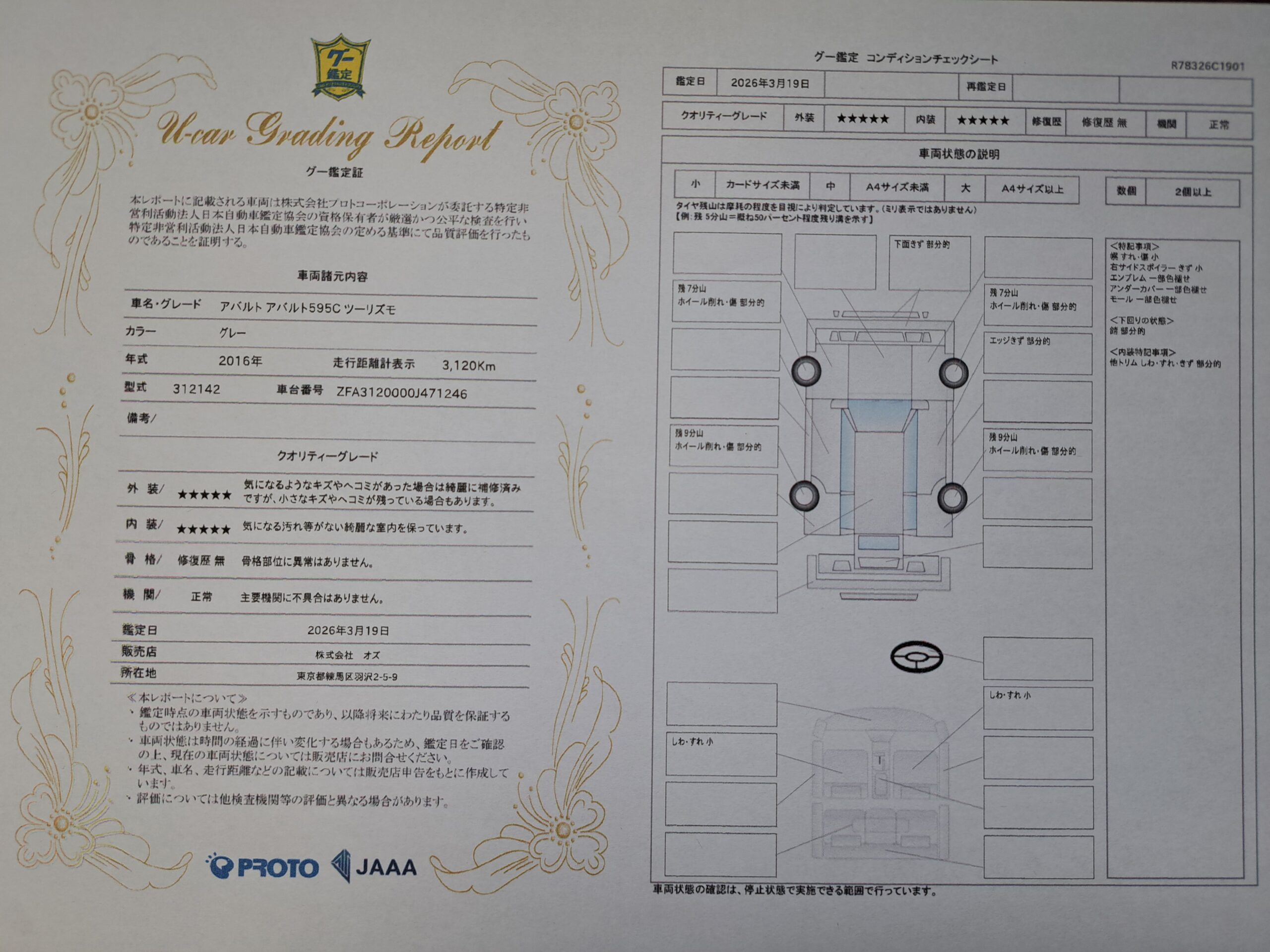 3. 入庫しました!GOO鑑定書付 2016年 アバルト 595C…